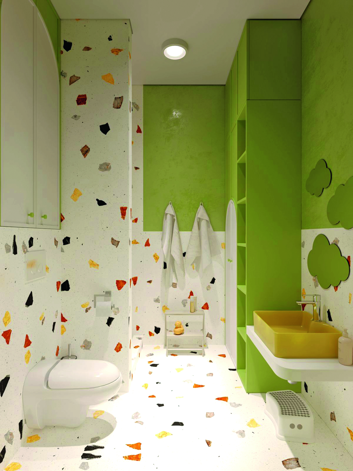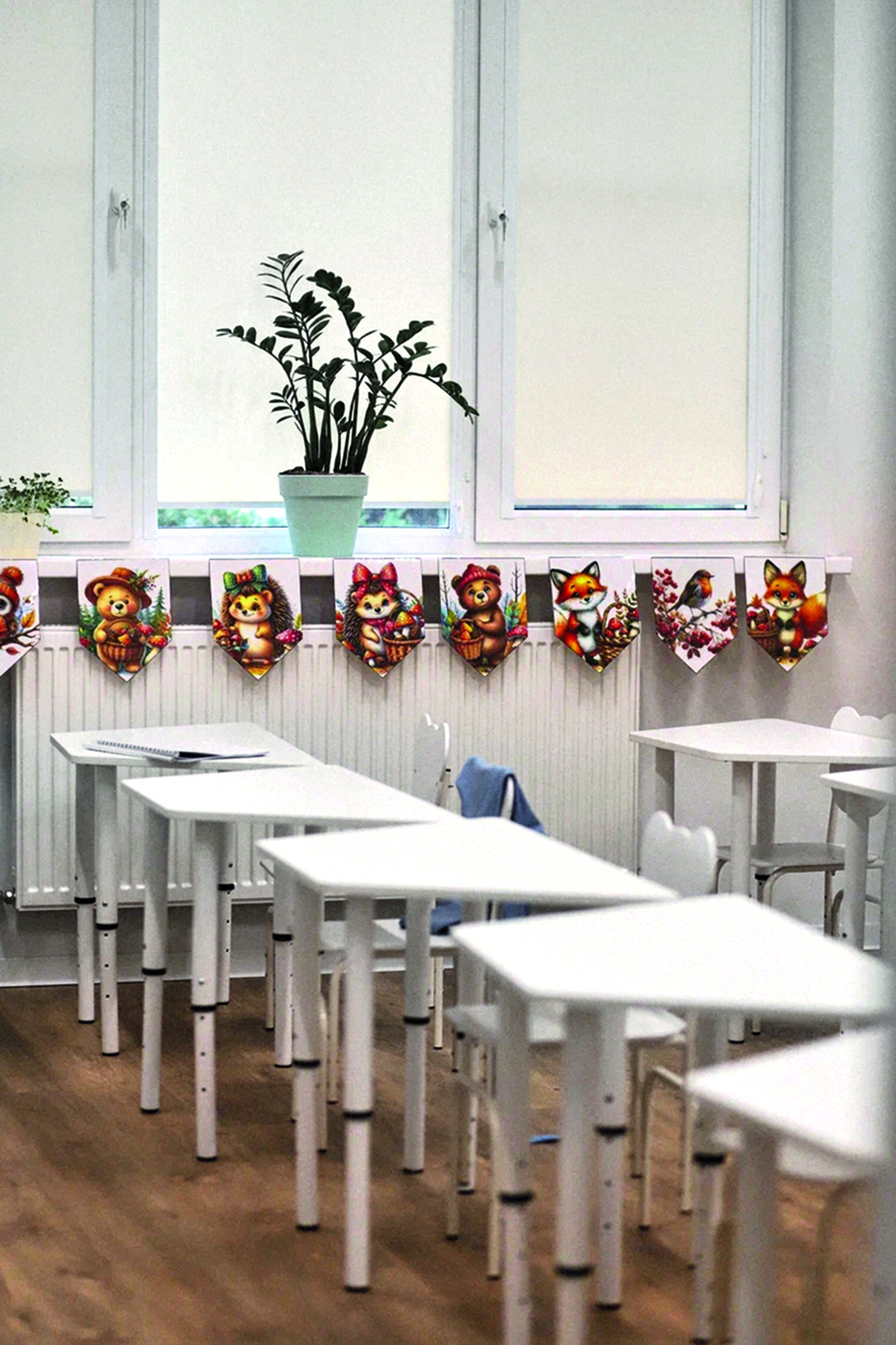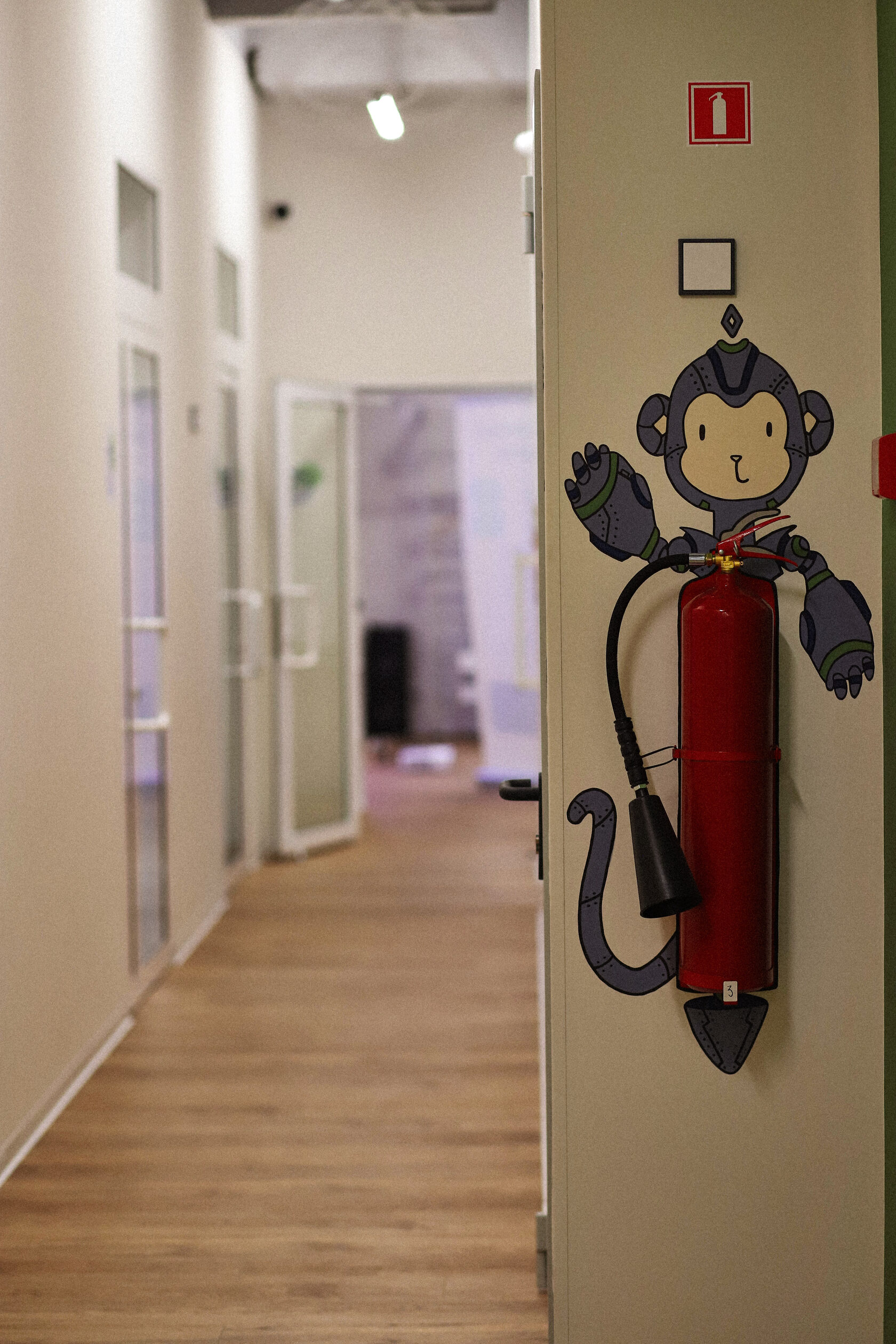 Филиал спроектирован с чистого листа, что позволило учесть все необходимые требования к безопасности и нормам санитарных правил. Белые стены, натуральные, природные оттенки, яркие, акцентные формы в сочетании с высокими потолками в четыре метра дают много воздуха, пробуждают воображение и нивелируют весь визуальный шум. Вся мебель мобильна и может передвигаться согласно задачам текущего дня. Здесь точно знают, что аккуратность и порядок очень важны для развития мозга.