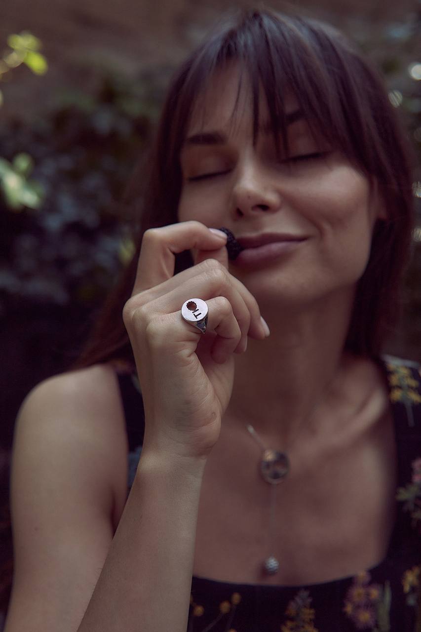 Мы выбрали серебро 925-й пробы — честный металл, не глянцевый, но живой, теплый, понятный. Логотип с ягодкой сделал Сергей Номерков — как и всегда. Он чувствует наш стиль буквально пальцами.